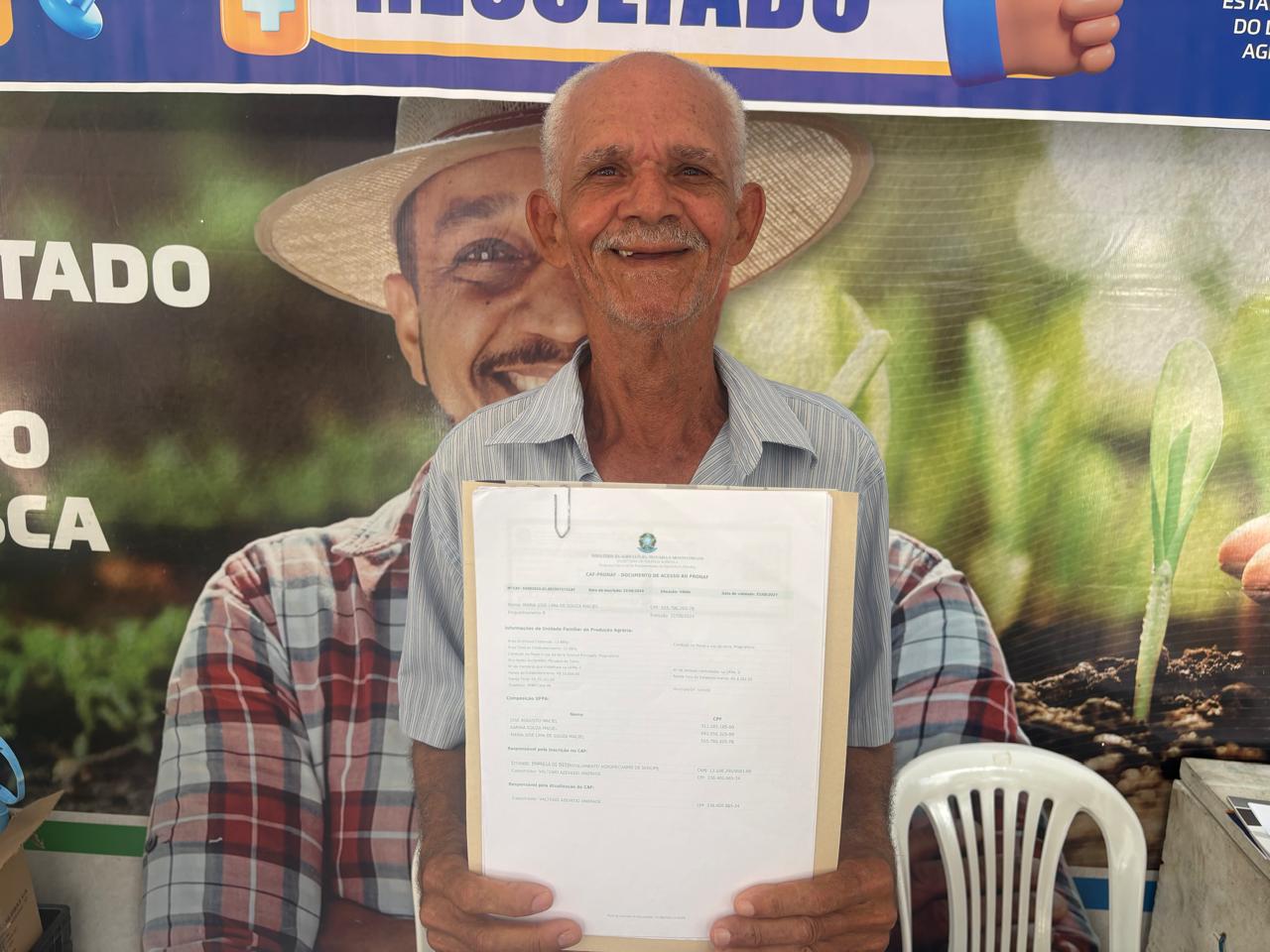 Agricultores do município também estiveram no estande da Agricultura para receber o certificado do Cadastro de Agricultor Familiar (CAF), como foi o caso de José Augusto Maciel. “Vim receber esse importante documento para o pequeno agricultor, que é o CAF. Com ele, a gente tem vários benefícios: pode fazer financiamento para melhorar a roça e pode dar entrada no pedido de aposentadoria, por exemplo. Eu já estou aposentado, mas minha esposa se aposentou com esse documento”, contou.