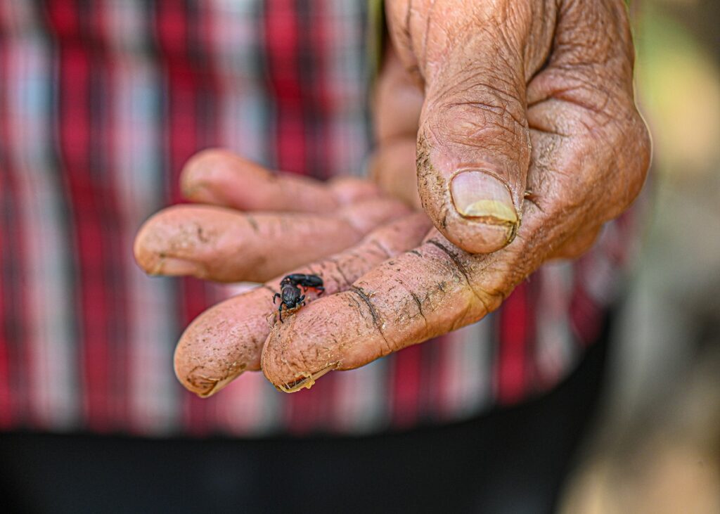 O controle de pragas da bananeira tem sido um desafio para os pesquisadores, porque os métodos convencionais, a partir de agroquímicos, demonstram baixa efetividade, além de causar danos com a poluição do ambiente e de animais benéficos. Para suprir essa necessidade, técnicas de controle biológico com fungos entomopatogênicos (que parasitam insetos) e outros grupos de microrganismos podem ser utilizadas. “O problema no pomar de seu Rufino foi um intenso ataque de Cosmopolites sordidus, mais conhecido como moleque-da-bananeira”, identificou o pesquisador.