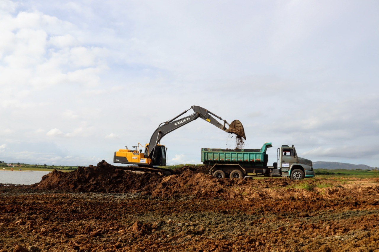 Obras do Pró-Campo continuarão ampliando leito da barragem do Ribeira até que o nível da barragem permita o trabalho das máquinas