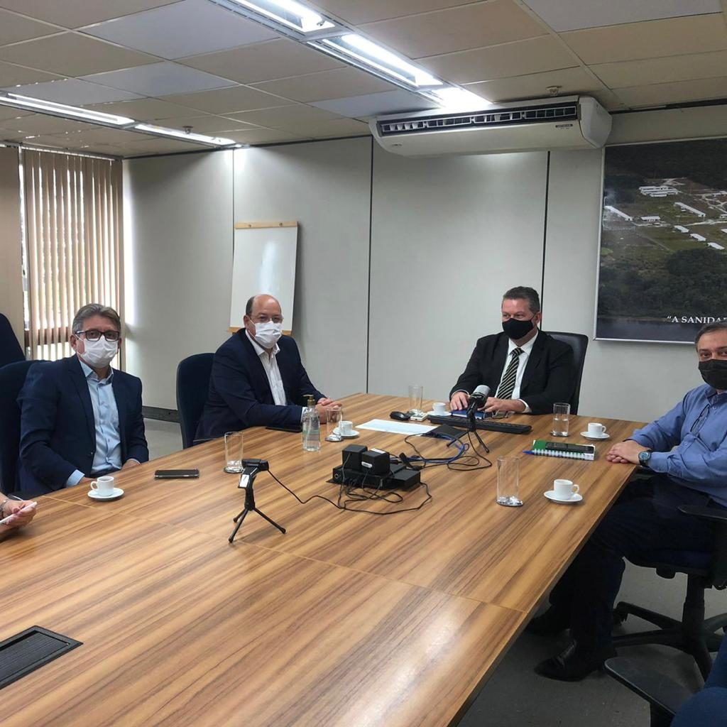 Na oportunidade, eles também estiveram no Ministério da Agricultura onde conversaram com o secretário de Defesa Agropecuária, Guilherme Tollstadius Leal, sobre as demandas existentes e a atual situação do Estado que já apresentou toda documentação necessária e aguarda análise final para o recebimento do selo de acreditação do Sistema Brasileiro de Inspeção de Produtos de Origem Animal (SISBI-POA). “Já estamos trabalhando nisso há algum tempo, cumprindo todo o check list, com as exigências apresentadas pelo Ministério da Agricultura e agora já em fase final para recebermos esse selo, que representa a certificação da qualidade de nossos produtos e aptidão para comercialização em todo o território nacional”, explicou Jefferson Feitosa.
