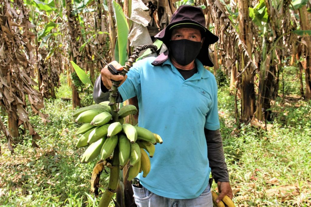 José Francisco planta a banana em seu lote em Riachuelo, irrigado pelo perímetro Jacarecica II. Sem agrotóxico, garante ele. “Tenho a banana pão, a maçã e tenho a prata. A produção é boa, eu tiro por semana, da prata, 40 caixas. Agora no verão eu chego a tirar 50 a 60 caixas por semana. Vai tudo para o mercado do [bairro] Augusto Franco, em Aracaju. Eu vendo na minha banca e um pouco eu boto para a Coopersus (Cooperativa de Produtores Orgânicos de Sergipe). A irrigação é a parte fundamental, sem a água não vai para frente”, esclarece.