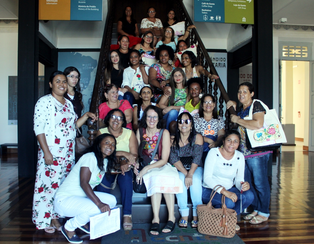 O projeto realizou oficina para bordadeiras de cinco municípios que trabalham com ponto cruz, richelieu e rendendê. Elas tiveram como inspiração estética o artista sergipano Artur Bispo do Rosário.