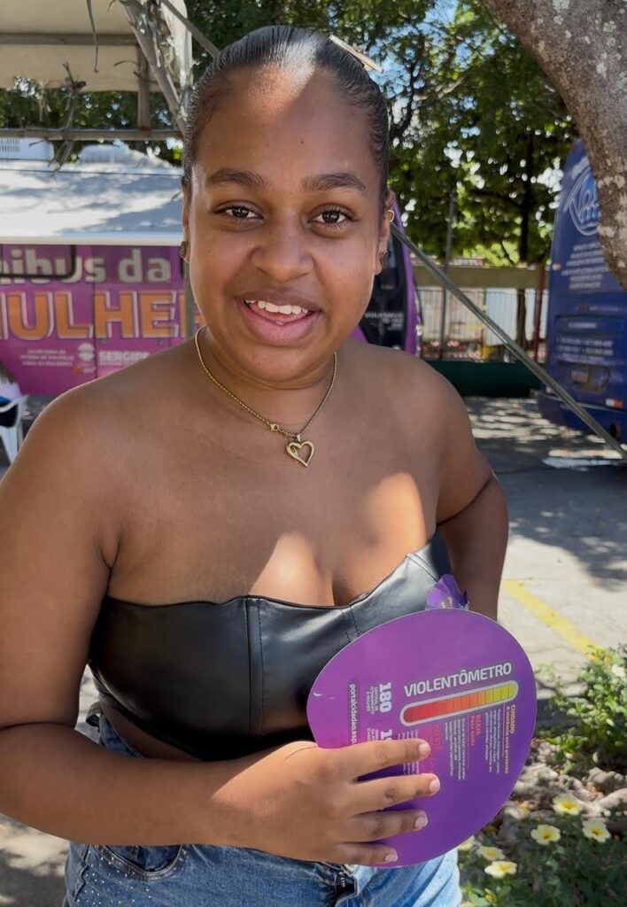 A secretária de Estado de Políticas para as Mulheres, Georlize Teles, destacou que é por meio de atividades como as realizadas na Ceasa Aracaju que a discussão sobre políticas públicas para as mulheres chega à sociedade. “A gente só enfrenta a violência contra a mulher a partir desse letramento, das informações levadas ao povo. É trazer isso para as mulheres que movimentam esse espaço, sejam as permissionárias, as clientes ou as mulheres do entorno. Estamos abordando e dialogando com todas, e também com os homens”, afirmou. A secretaria é responsável pelo Ônibus Lilás, que leva serviços, informações e ações de combate à violência de gênero para todo o território sergipano.